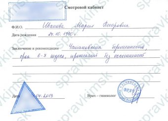 Для приобретения медсправки, понадобится состоять на учете у гинеколога начиная с 10-11 недели, что предполагает частое посещение женской консультации, а также сдачу анализов и осмотр гинеколога.